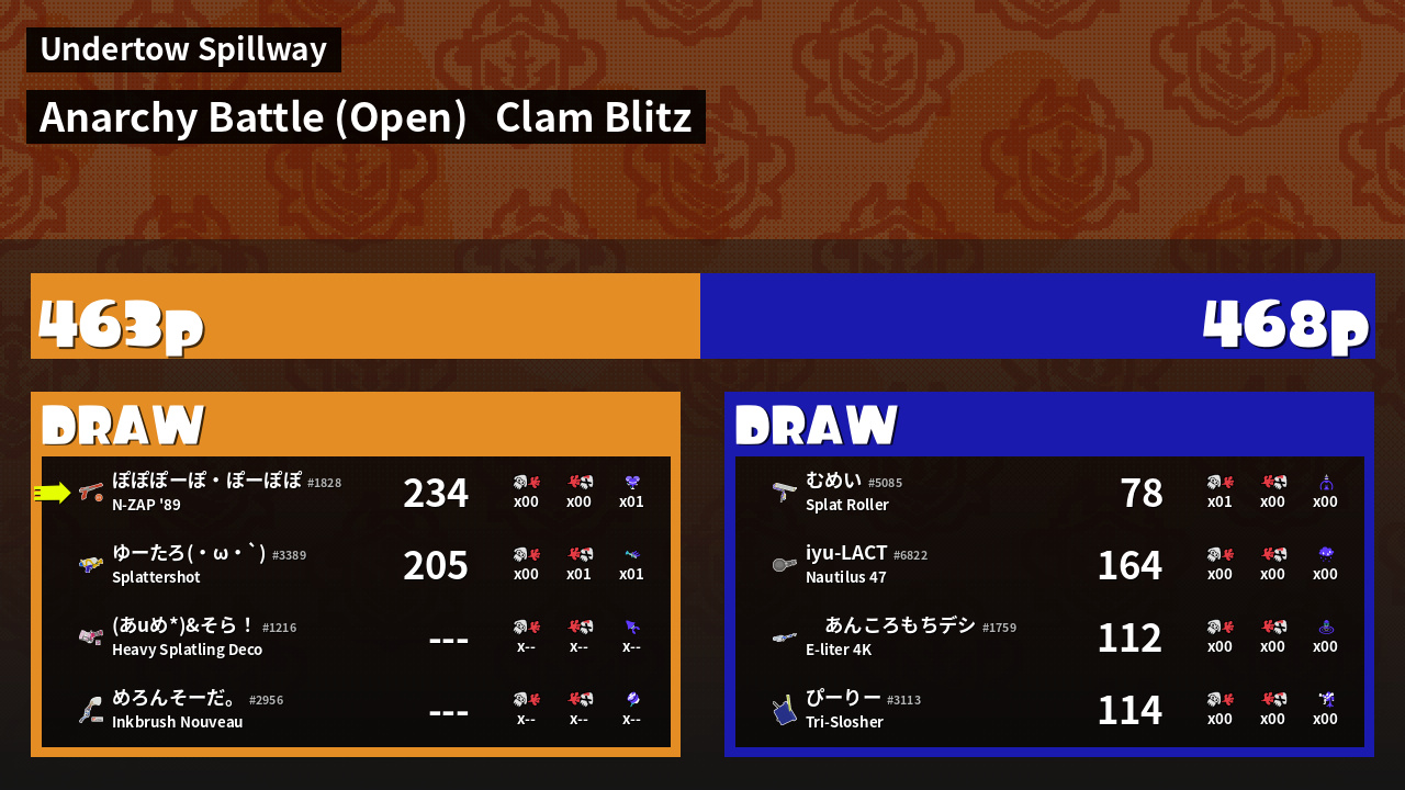 | Mode | Clam Blitz - Anarchy Battle (Open) | ||