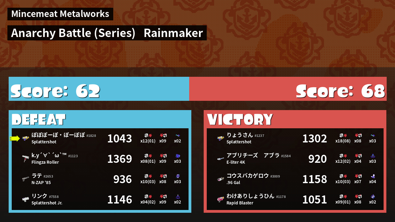 Kills / Deaths | 11 + 1 / 9 > Kill Ratio: 1.22 | ||