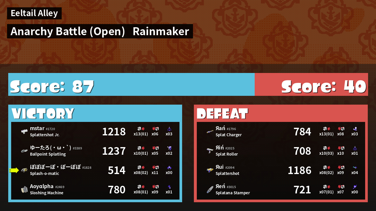 | Mode | Rainmaker - Anarchy Battle (Open) | ||