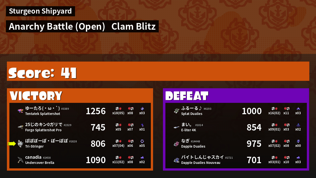 | Mode | Clam Blitz - Anarchy Battle (Open) | ||