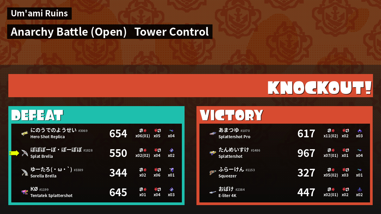 | Weapon | Splat Brella ( Sprinkler / Triple Inkstrike) | ||