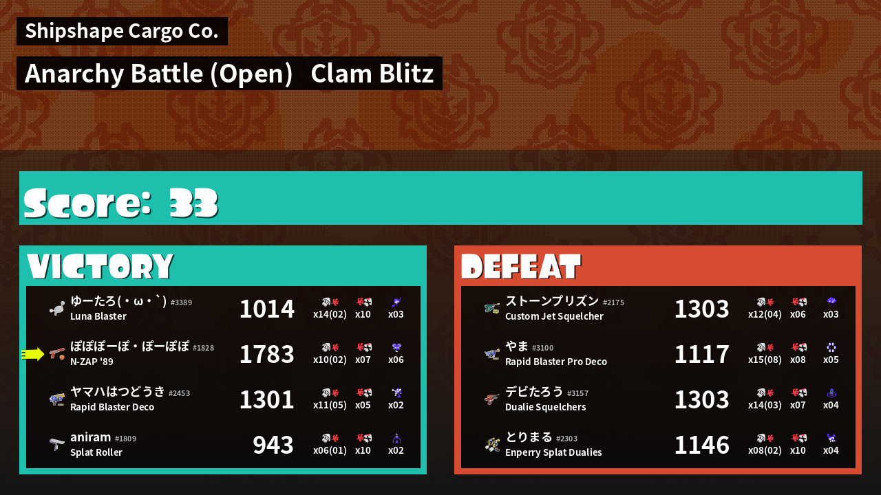 | Mode | Clam Blitz - Anarchy Battle (Open) | ||