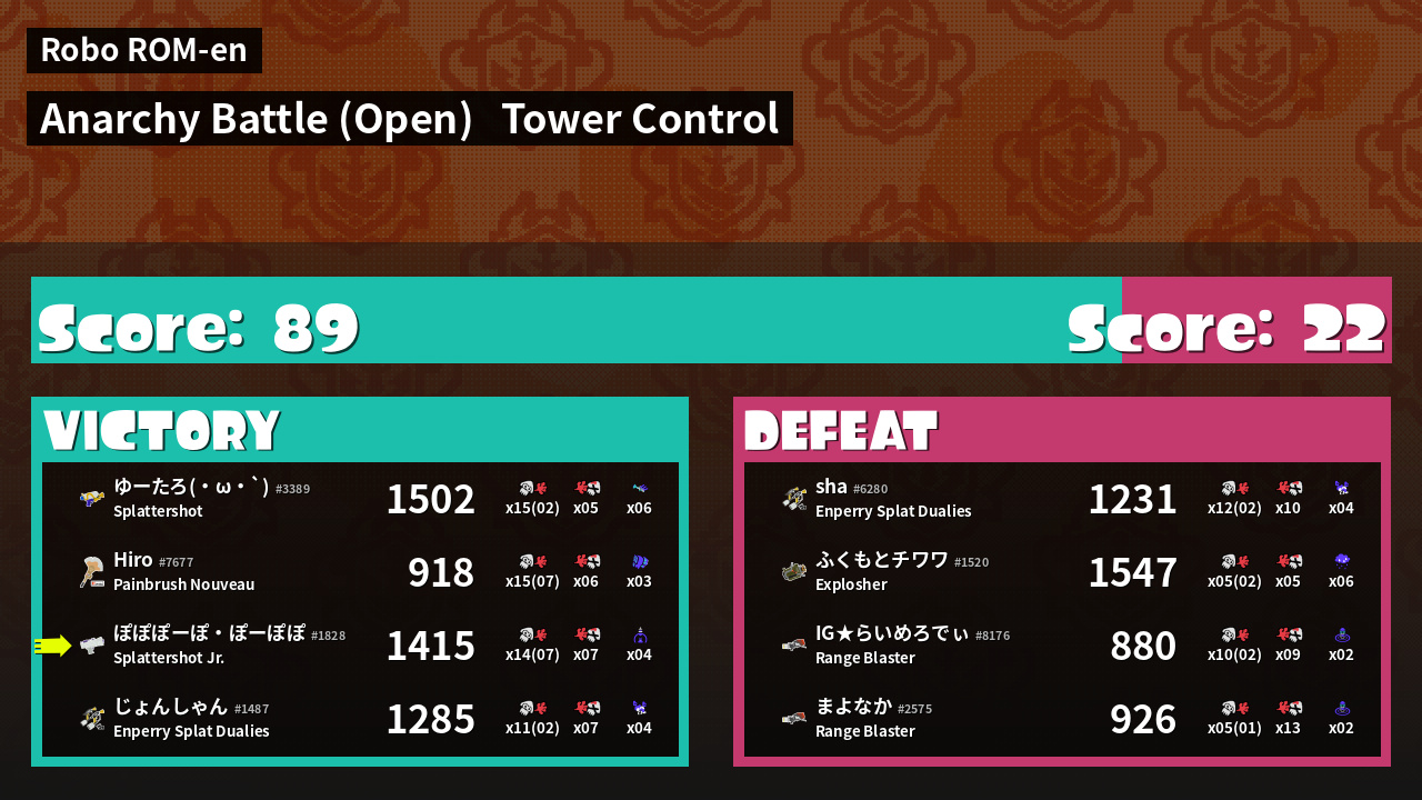 | Mode | Tower Control - Anarchy Battle (Open) | ||