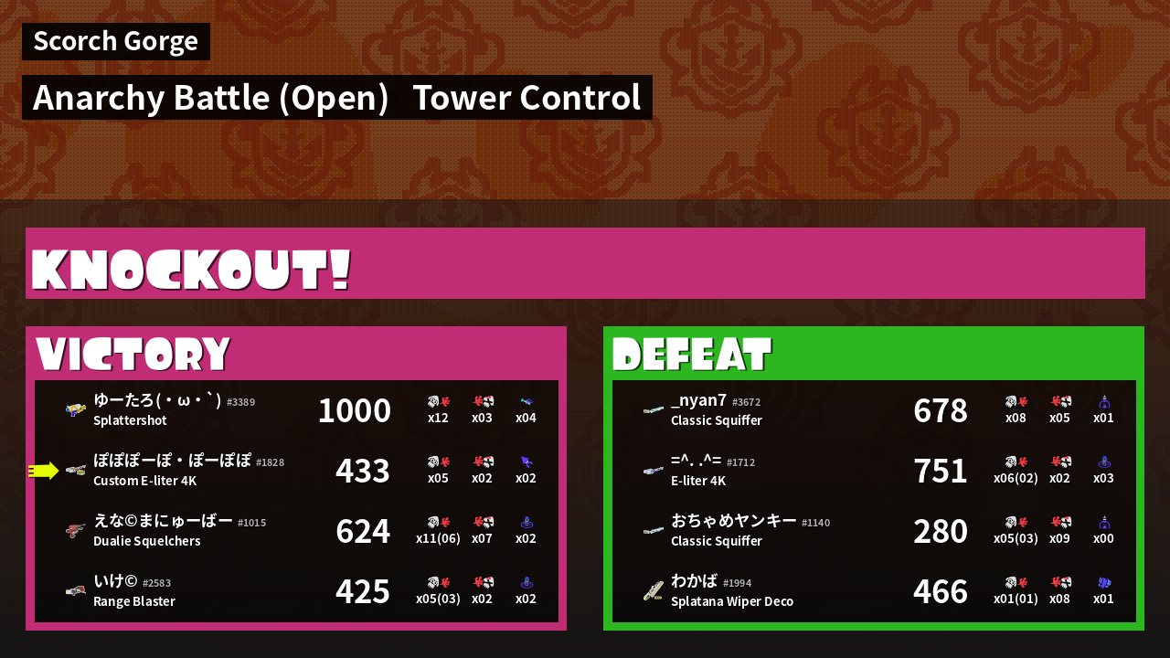 Name | Weapon | Inked | ![]() |