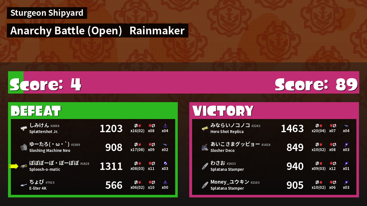 | Mode | Rainmaker - Anarchy Battle (Open) | ||