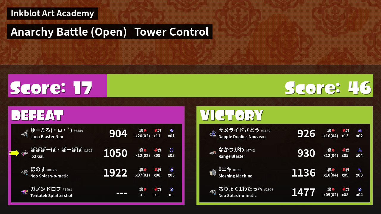 Name | Weapon | Inked | ![]() |