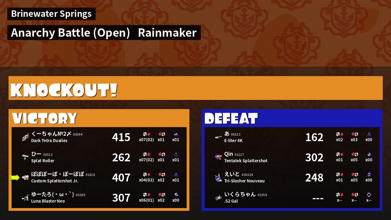 | Mode | Rainmaker - Anarchy Battle (Open) | ||