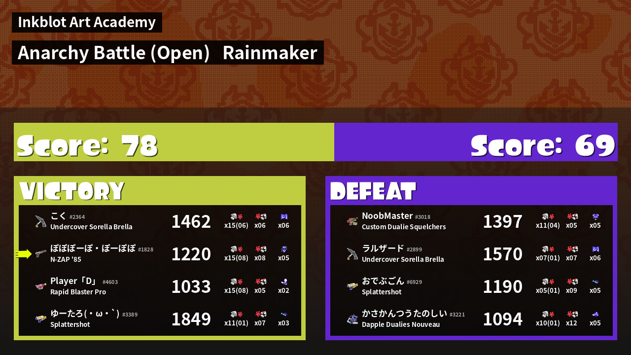 | Mode | Rainmaker - Anarchy Battle (Open) | ||