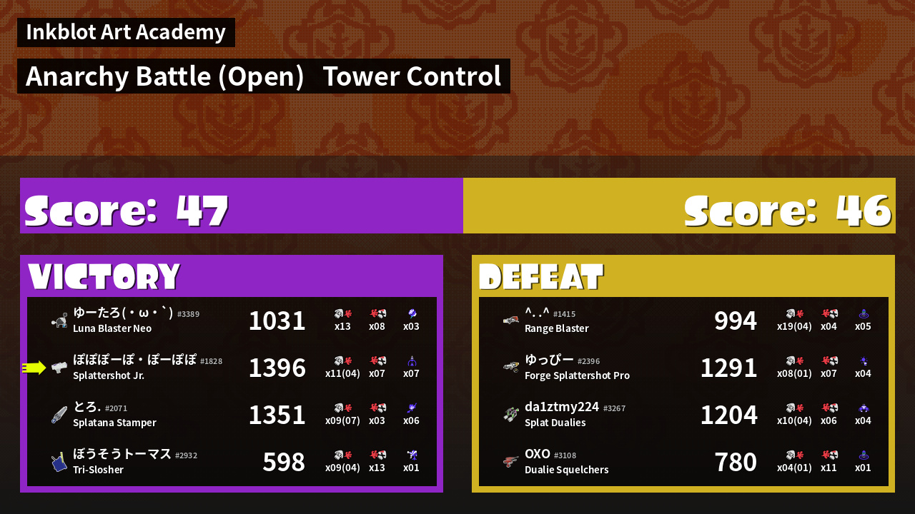 | Mode | Tower Control - Anarchy Battle (Open) | ||