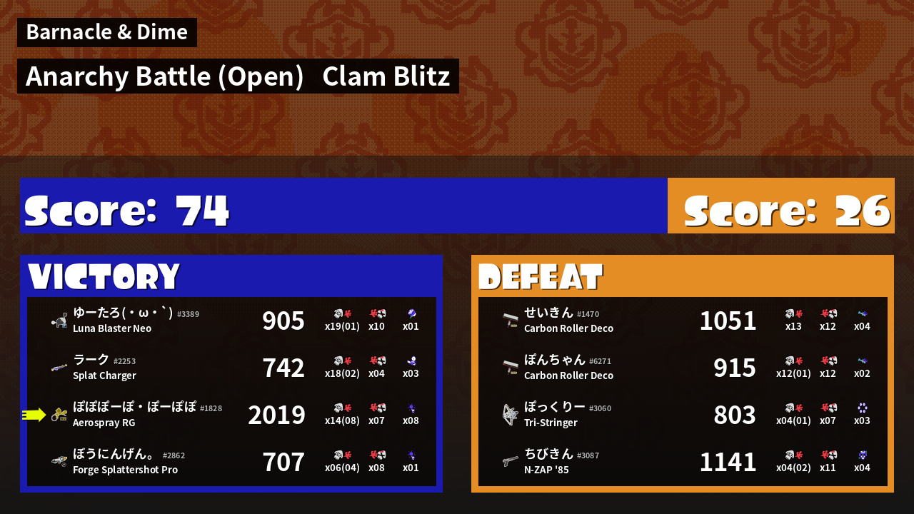 | Mode | Clam Blitz - Anarchy Battle (Open) | ||