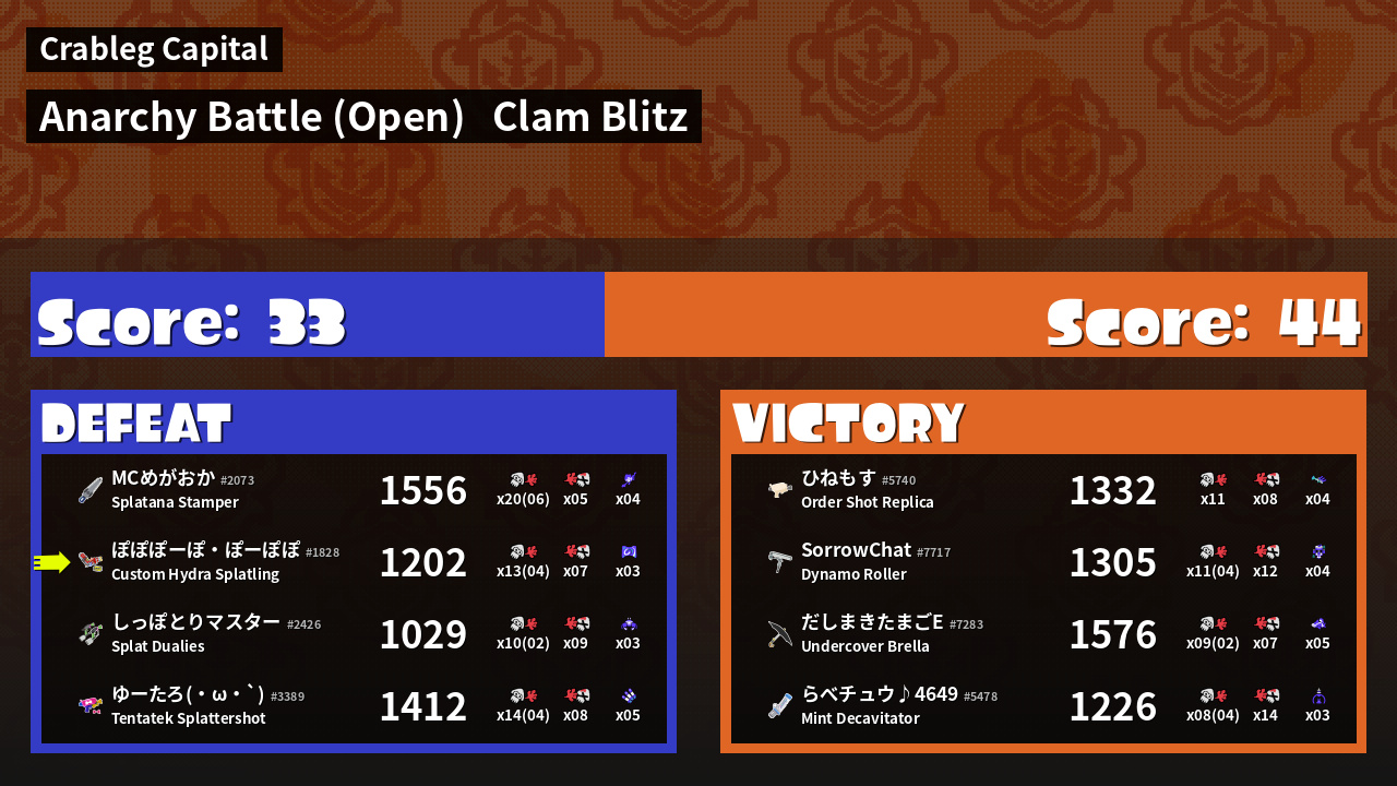 | Mode | Clam Blitz - Anarchy Battle (Open) | ||