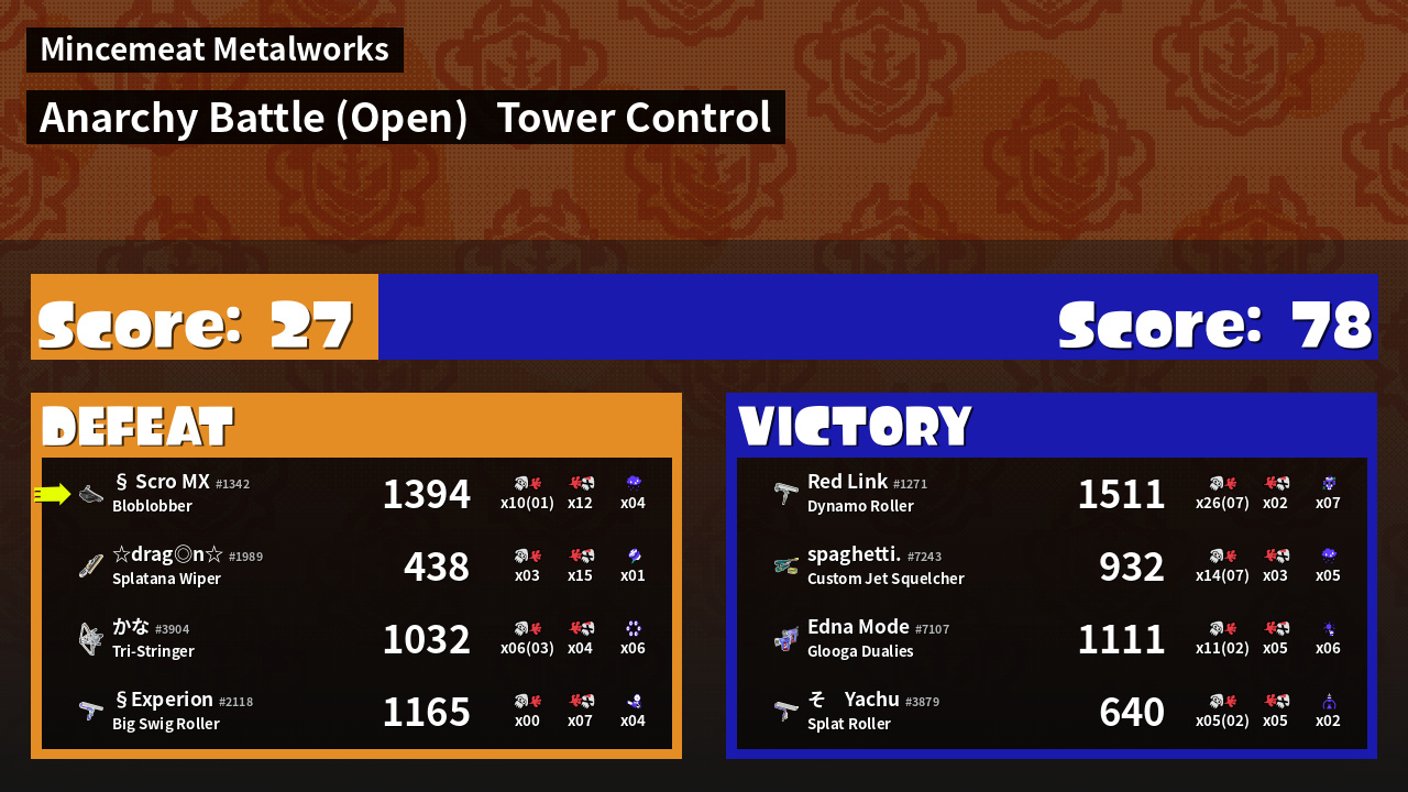| Medals | #1 Overall Splatter #1 Score Booster #1 Turf Inker | ||