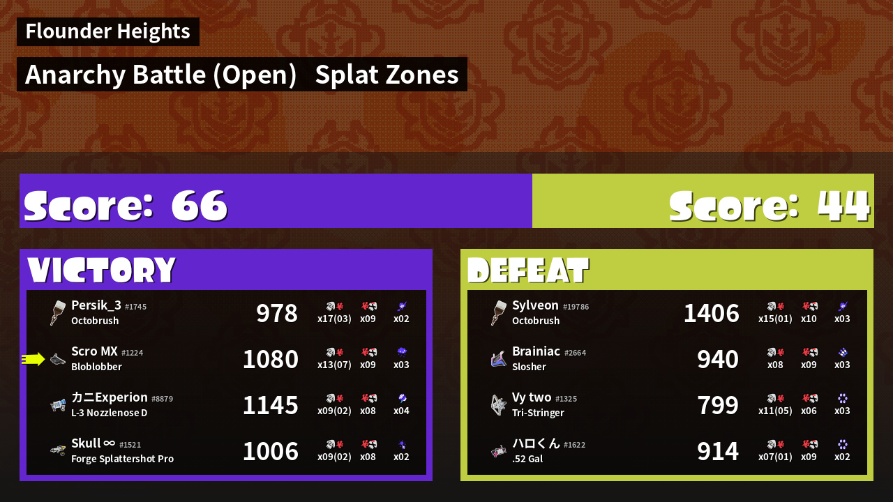 | Medals | #1 Splat Zone Guard #1 Super Jump Spot #1 Splat Assister | ||