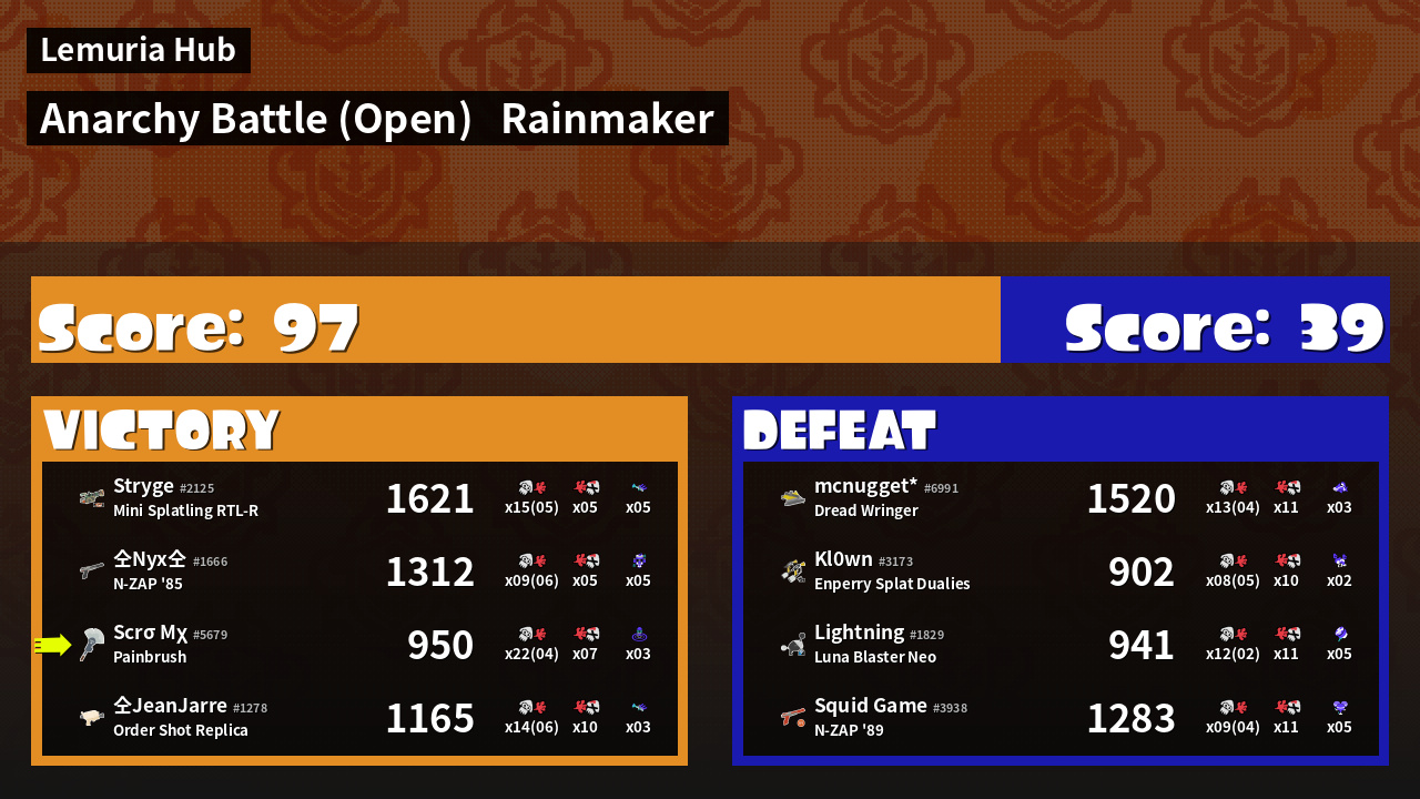 | Mode | Rainmaker - Anarchy Battle (Open) | ||