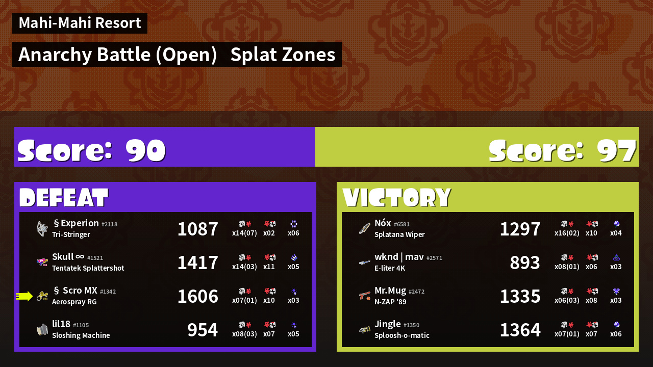 | Mode | Splat Zones - Anarchy Battle (Open) | ||