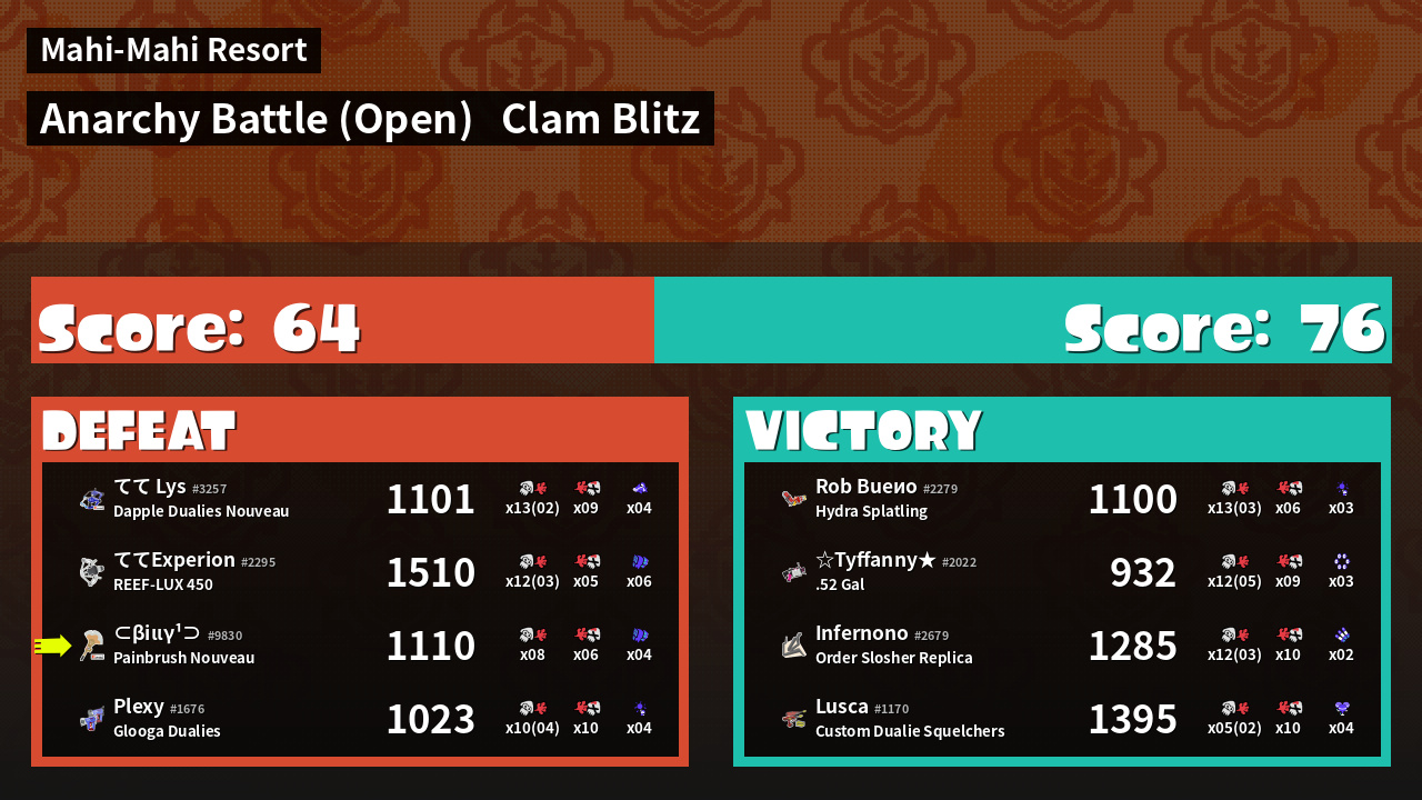 | Mode | Clam Blitz - Anarchy Battle (Open) | ||