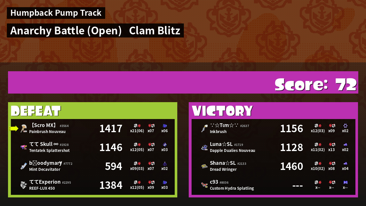 | Mode | Clam Blitz - Anarchy Battle (Open) | ||