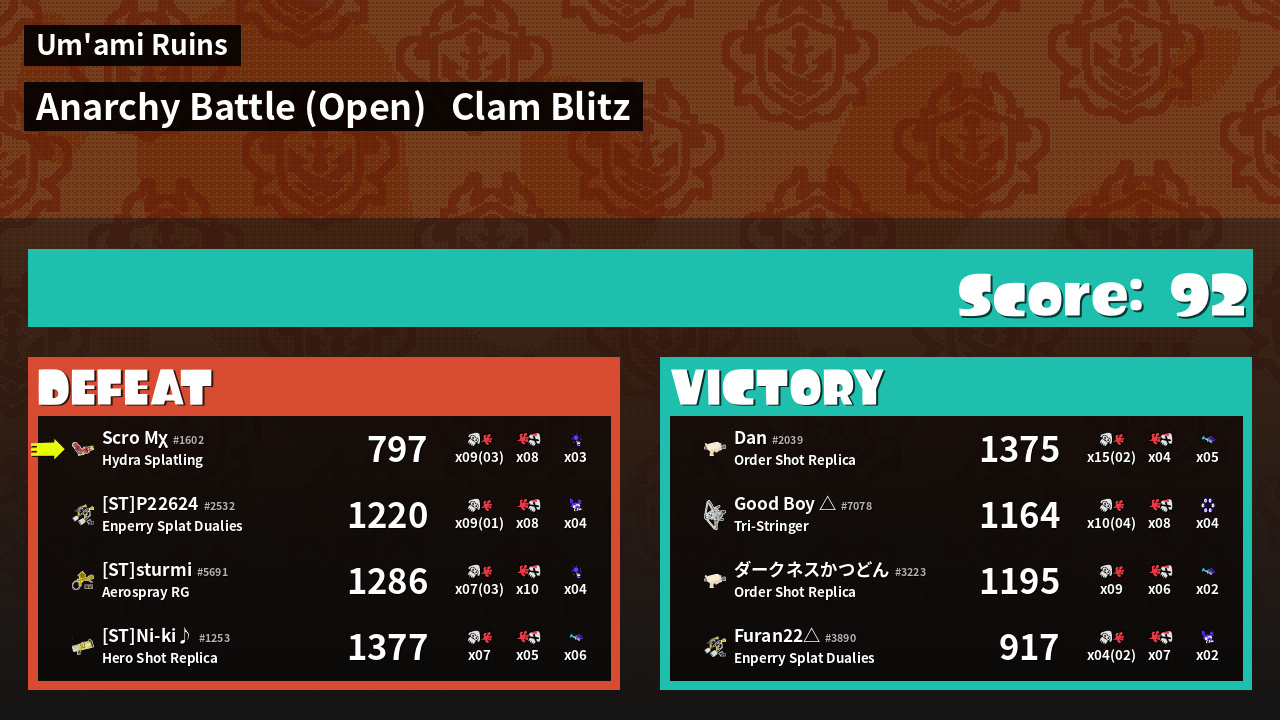 | Mode | Clam Blitz - Anarchy Battle (Open) |