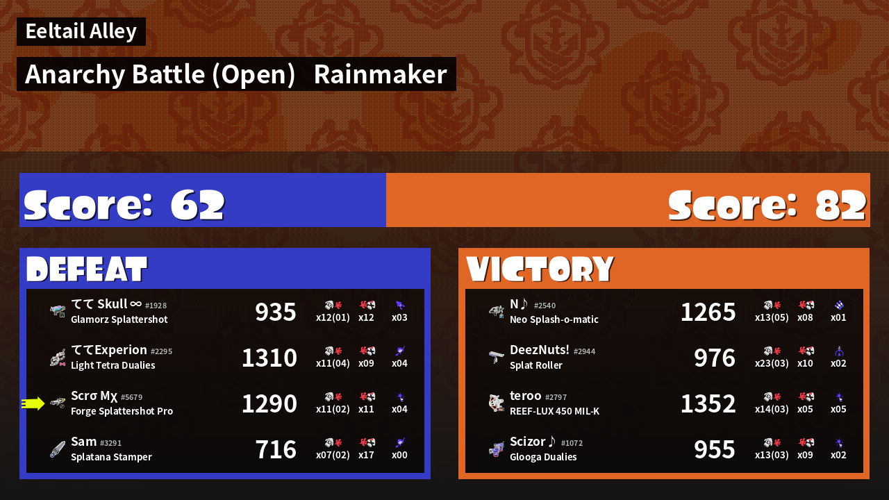 | Mode | Rainmaker - Anarchy Battle (Open) |