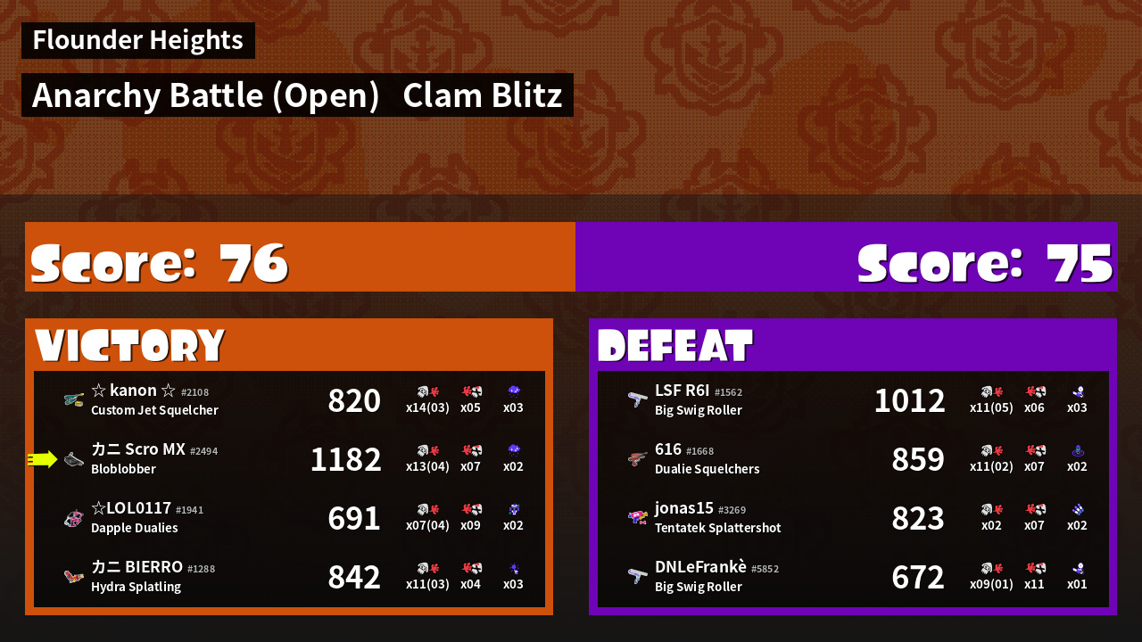 | Mode | Clam Blitz - Anarchy Battle (Open) | ||