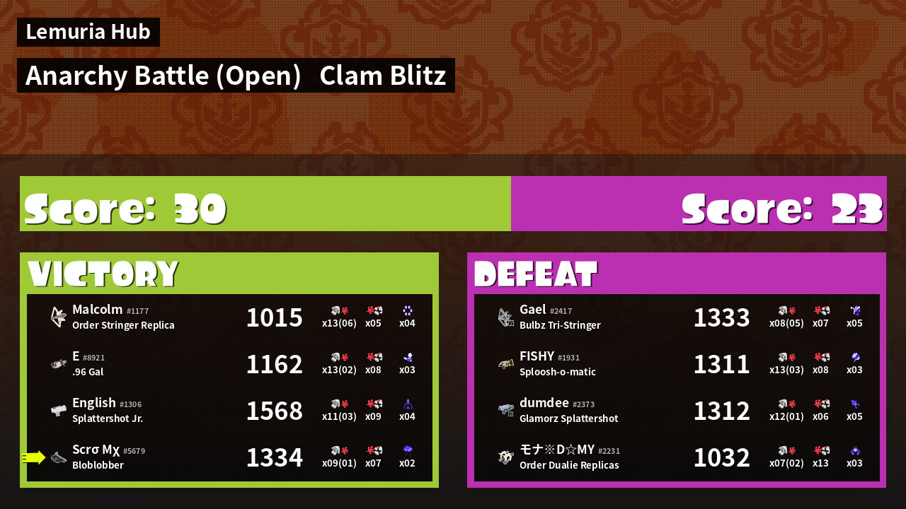 | Mode | Clam Blitz - Anarchy Battle (Open) |