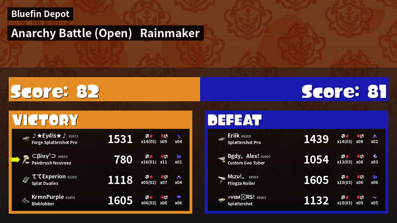| Mode | Rainmaker - Anarchy Battle (Open) | ||