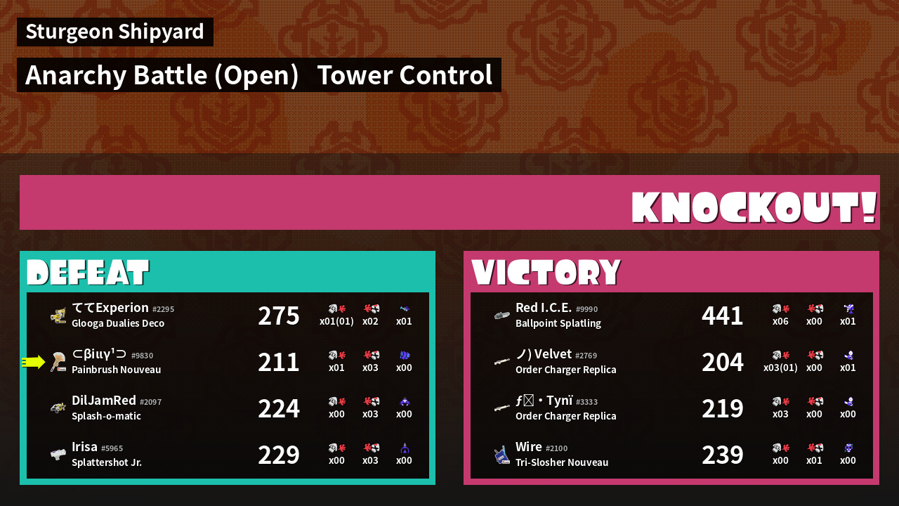 | Medals | #1 Overall Splatter #1 Enemy Splatter First Splat! | ||