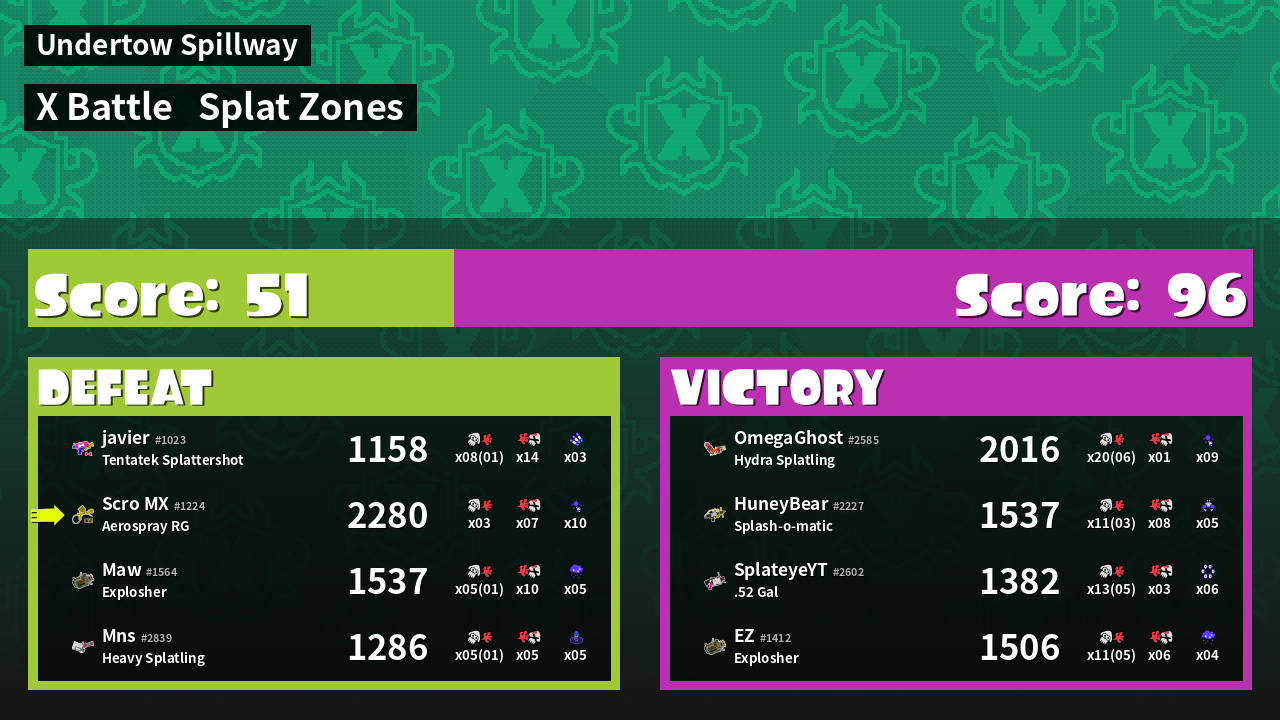 | Mode | Splat Zones - X Battle | ||