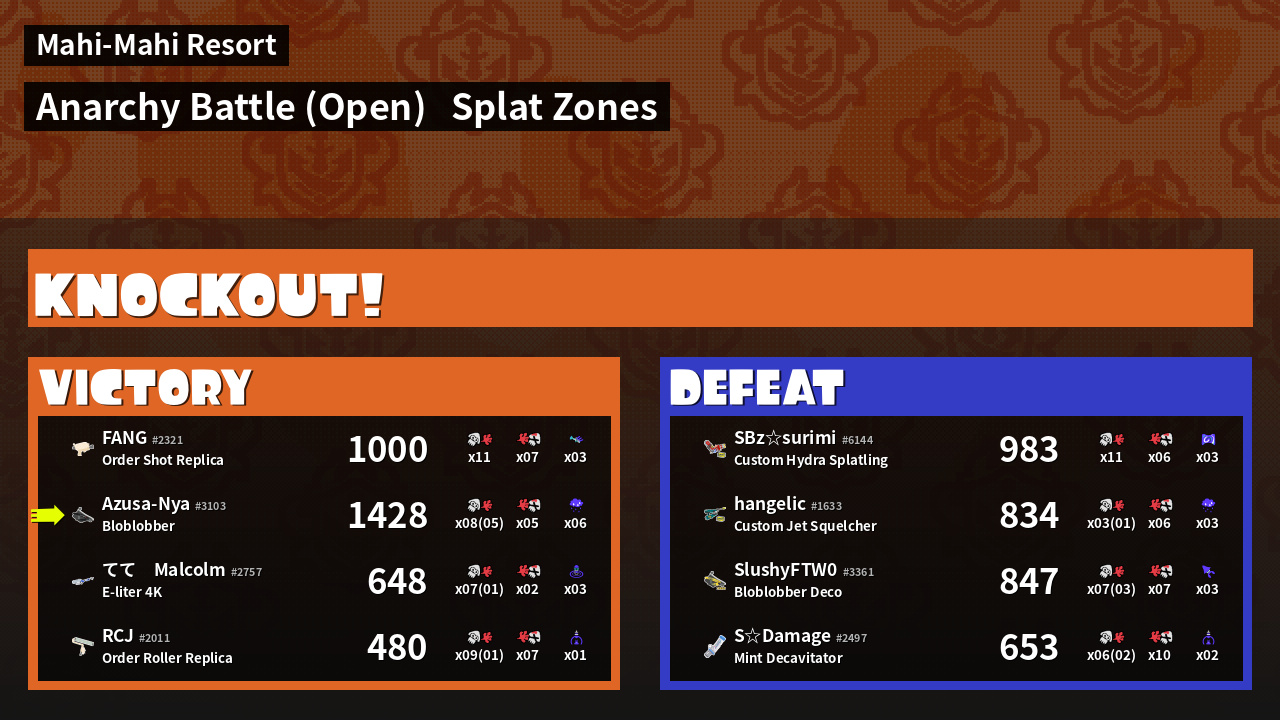 | Mode | Splat Zones - Anarchy Battle (Open) | ||