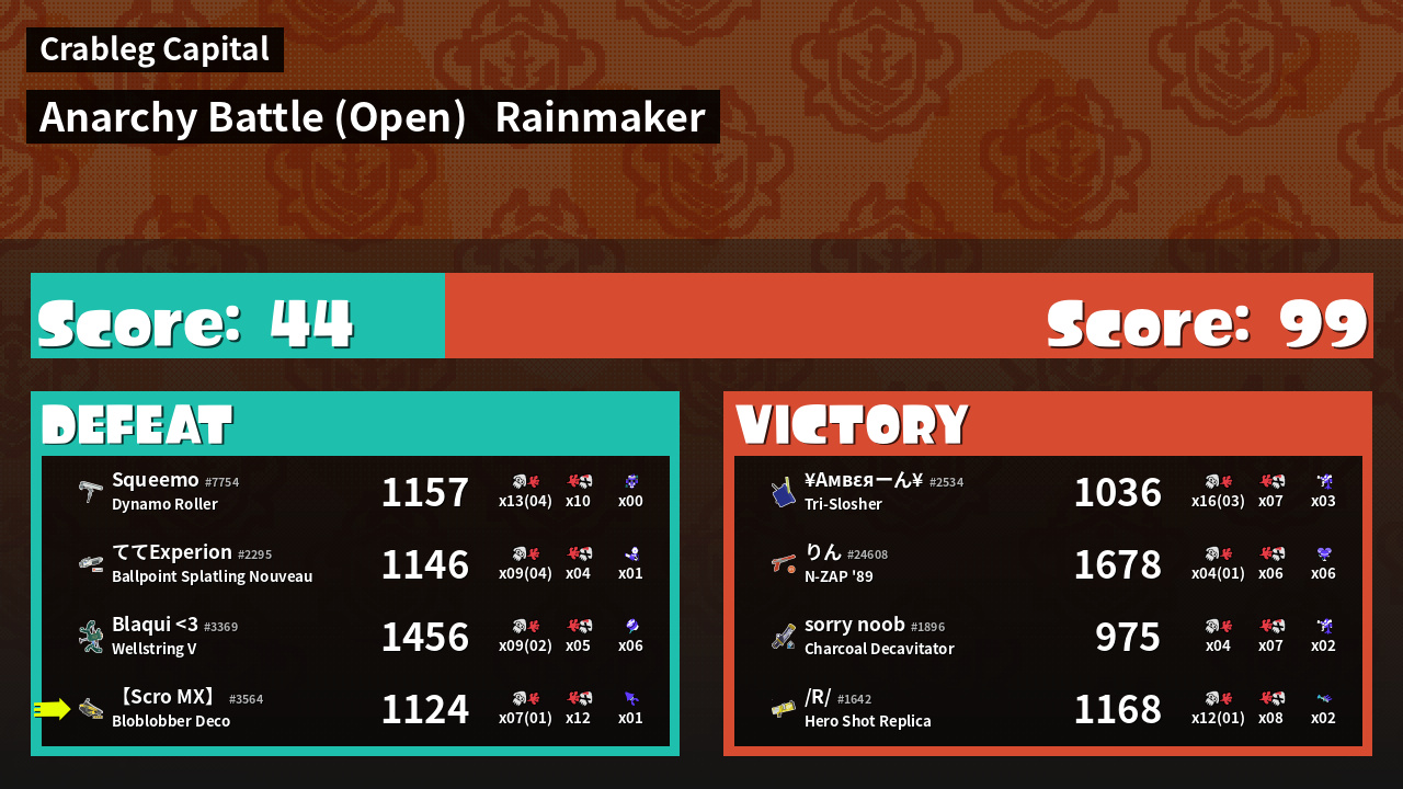 | Mode | Rainmaker - Anarchy Battle (Open) | ||