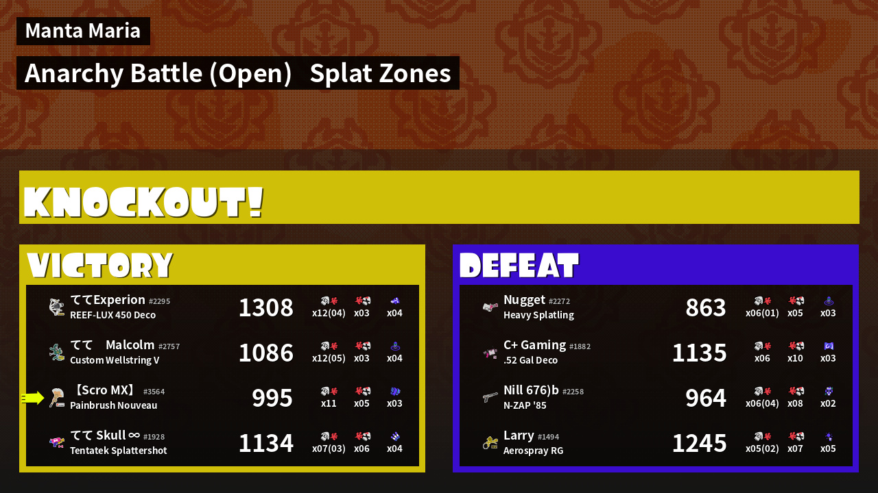 | Mode | Splat Zones - Anarchy Battle (Open) | ||