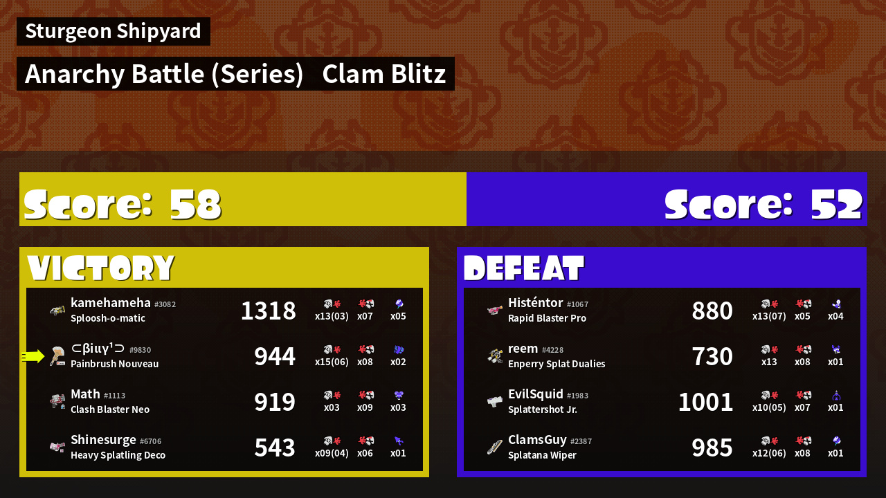 | Mode | Clam Blitz - Anarchy Battle (Series) | ||