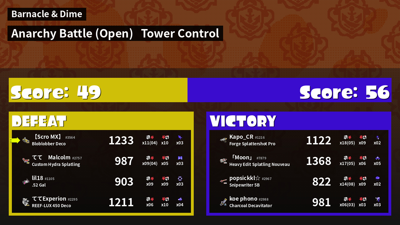 | Mode | Tower Control - Anarchy Battle (Open) | ||