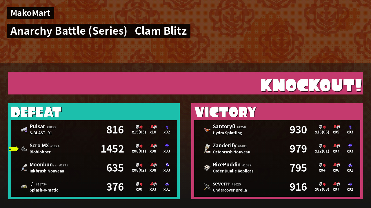 | Mode | Clam Blitz - Anarchy Battle (Series) | ||