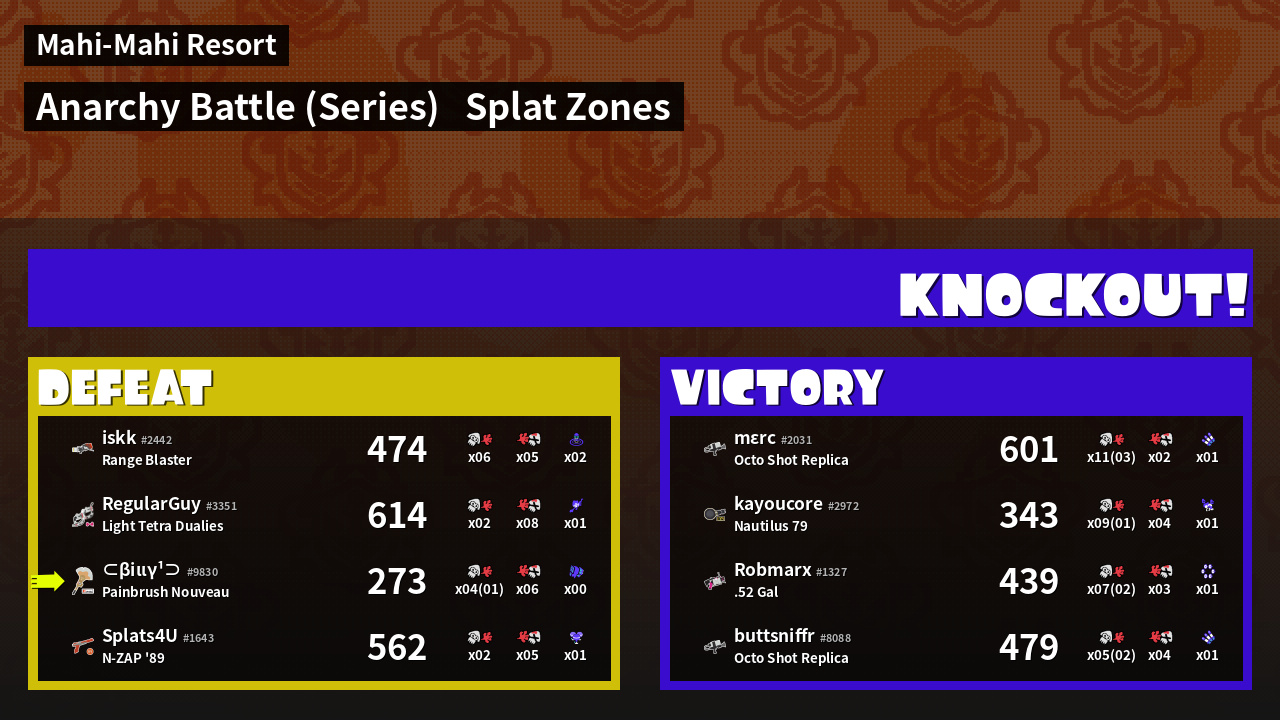 | Medals | #1 Splat Assister #2 Overall Splatter #2 Splat Zone Inker | ||