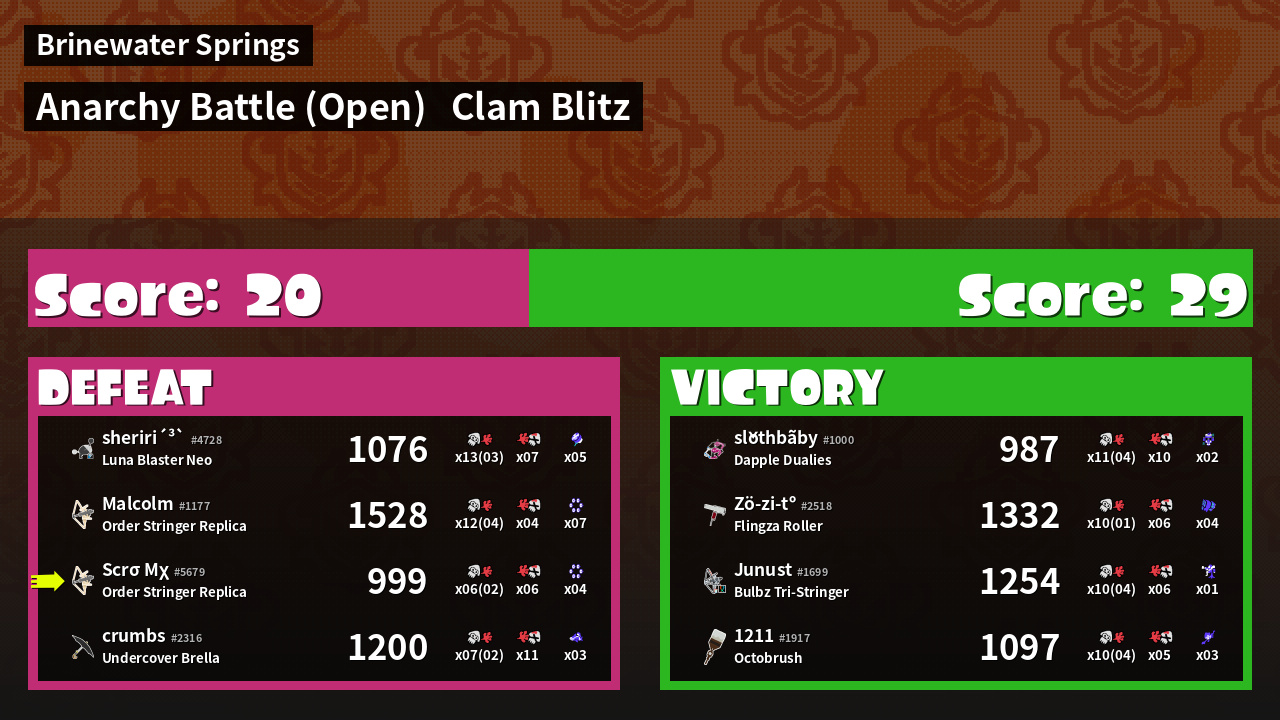 | Mode | Clam Blitz - Anarchy Battle (Open) |