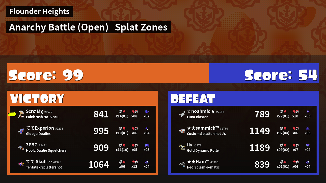 | Mode | Splat Zones - Anarchy Battle (Open) |