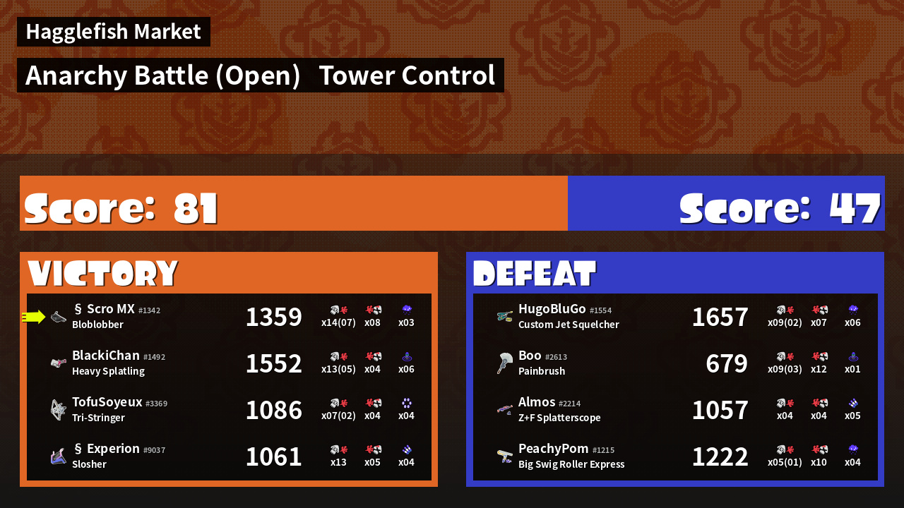 | Mode | Tower Control - Anarchy Battle (Open) | ||