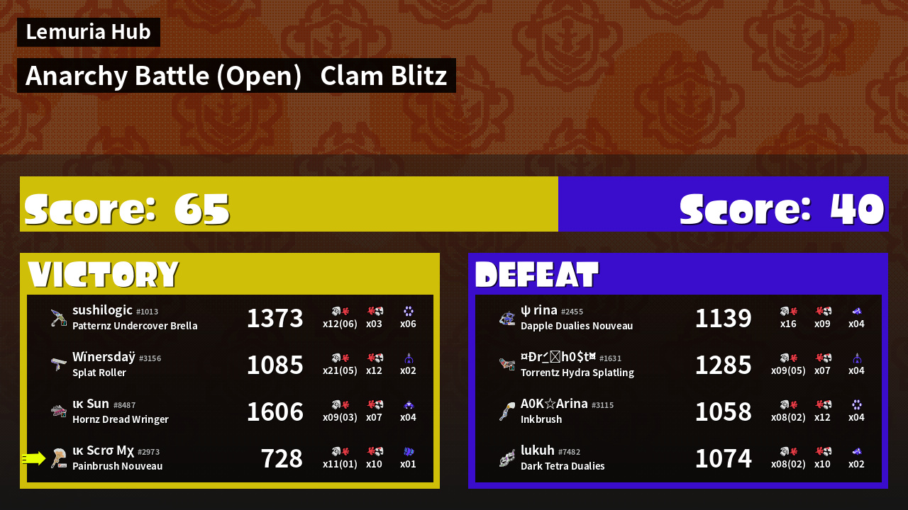 | Mode | Clam Blitz - Anarchy Battle (Open) | ||