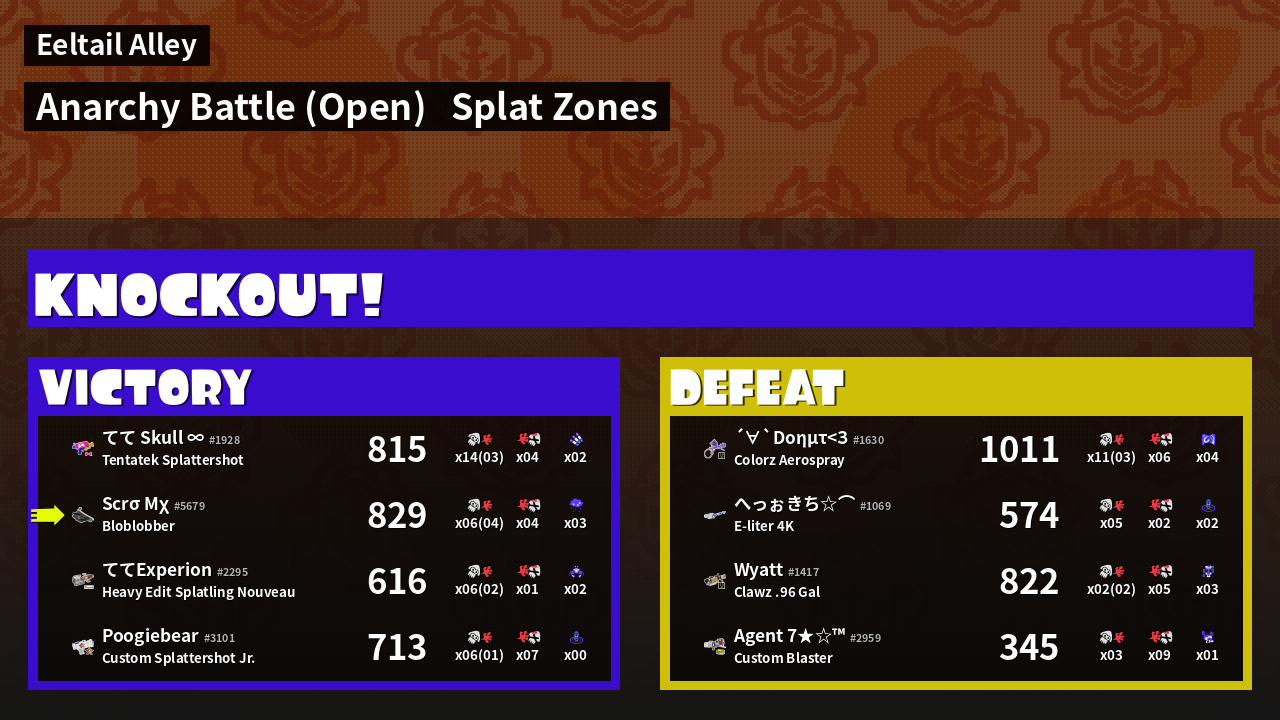| Mode | Splat Zones - Anarchy Battle (Open) |