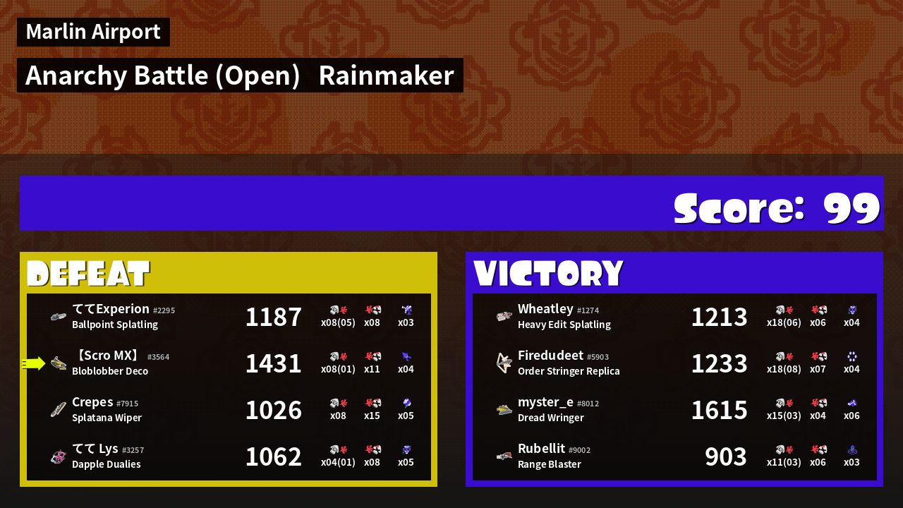 | Mode | Rainmaker - Anarchy Battle (Open) | ||