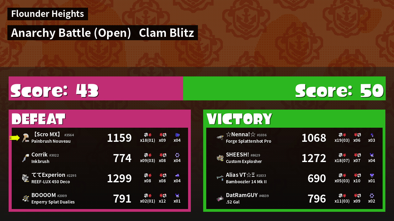 | Mode | Clam Blitz - Anarchy Battle (Open) | ||