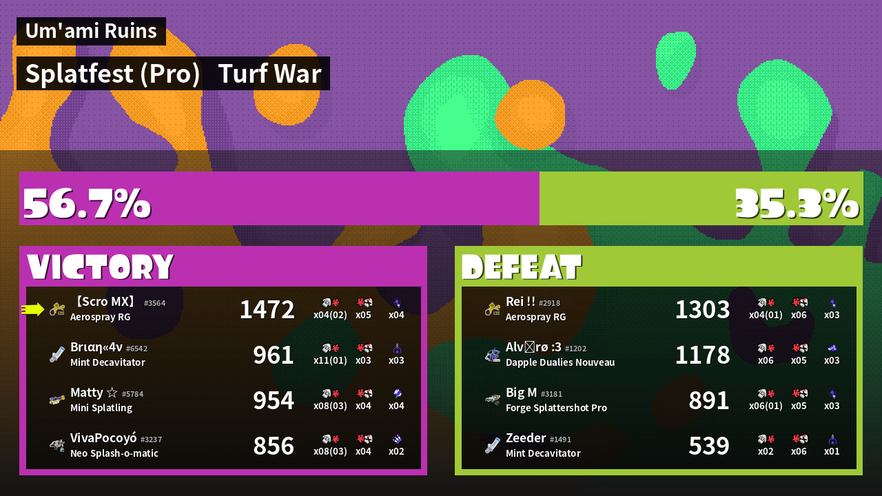 | Mode | Turf War - Splatfest (Pro) | ||