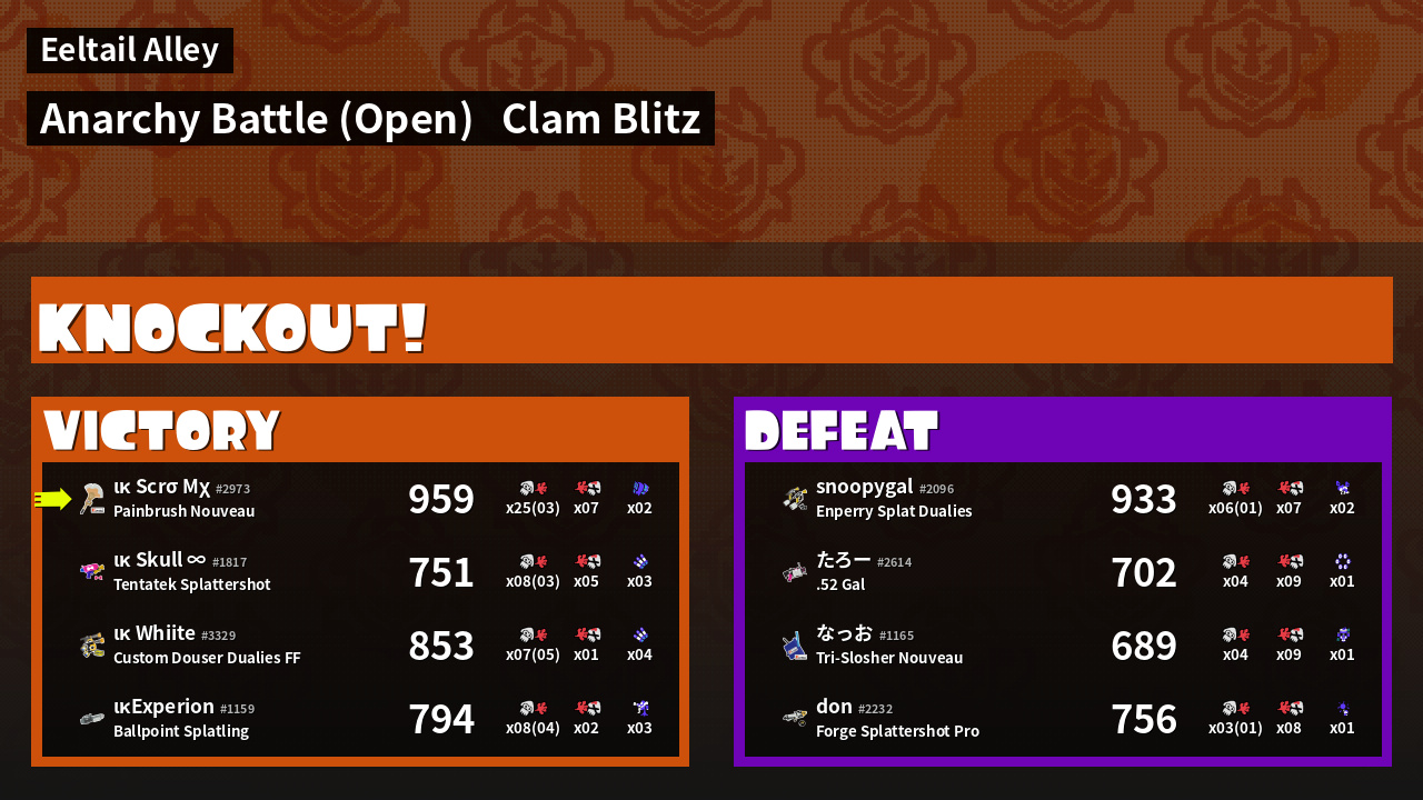 | Mode | Clam Blitz - Anarchy Battle (Open) | ||