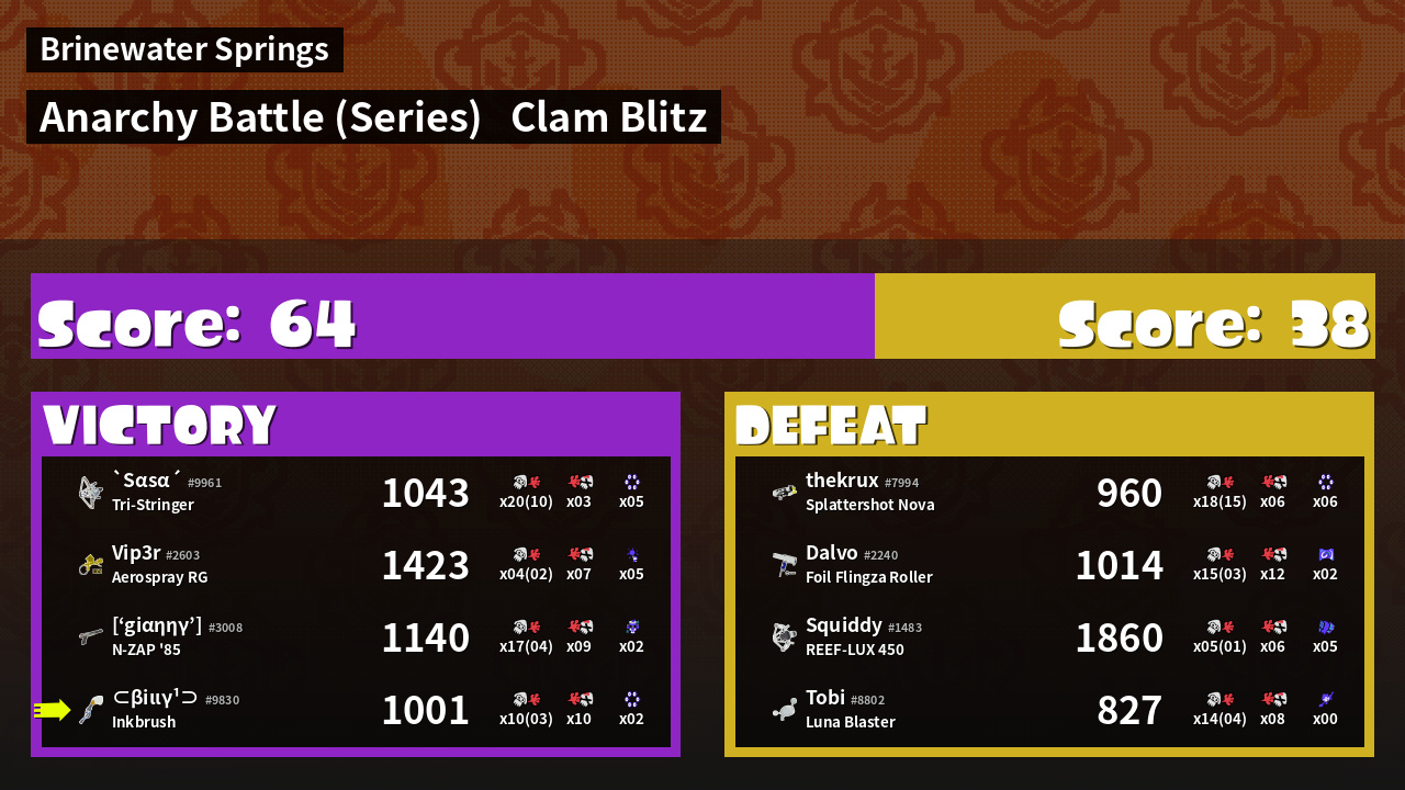| Mode | Clam Blitz - Anarchy Battle (Series) | ||