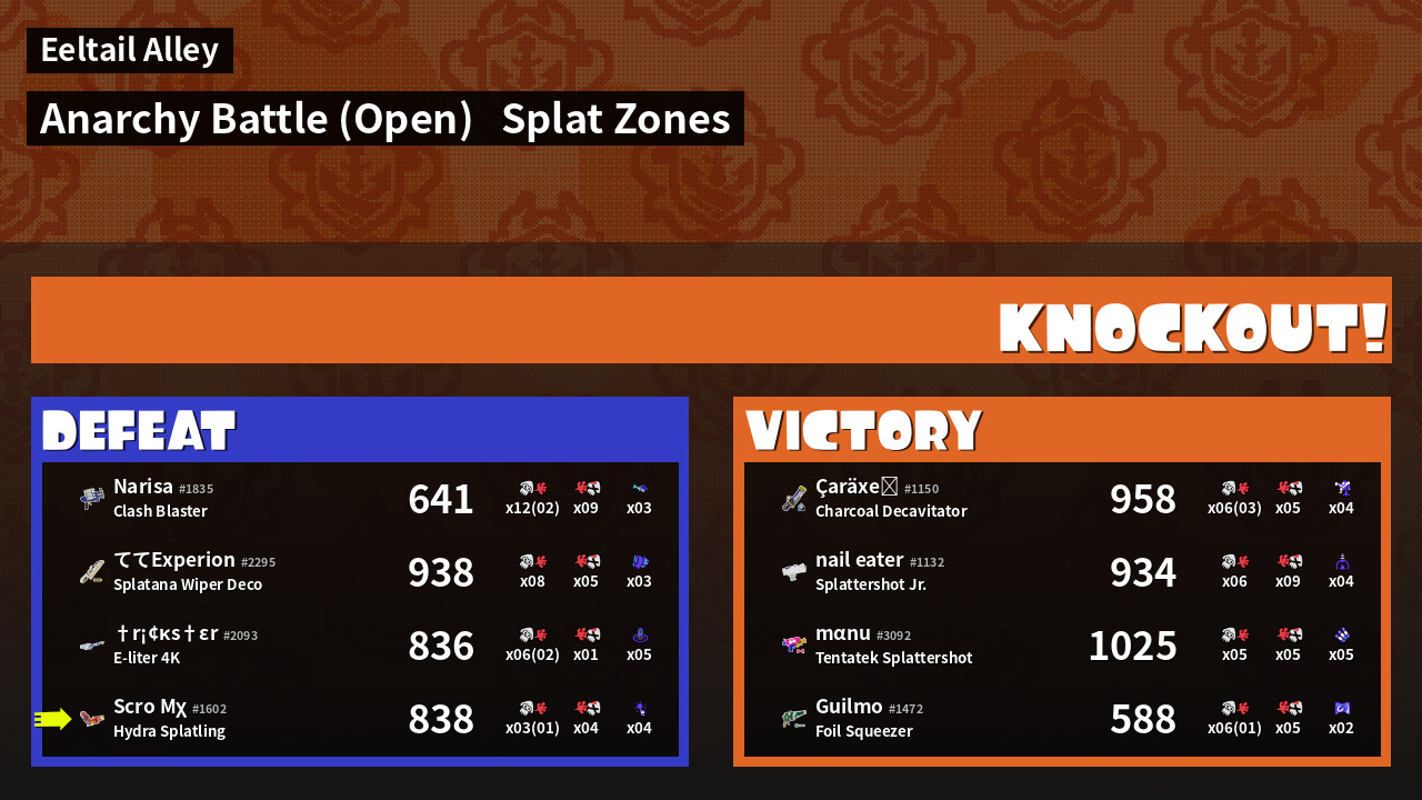 | Mode | Splat Zones - Anarchy Battle (Open) |