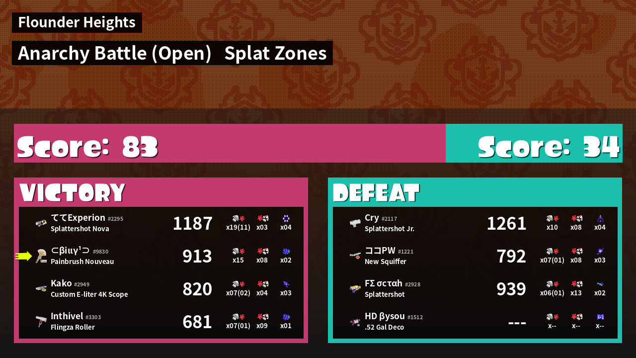 | Mode | Splat Zones - Anarchy Battle (Open) | ||