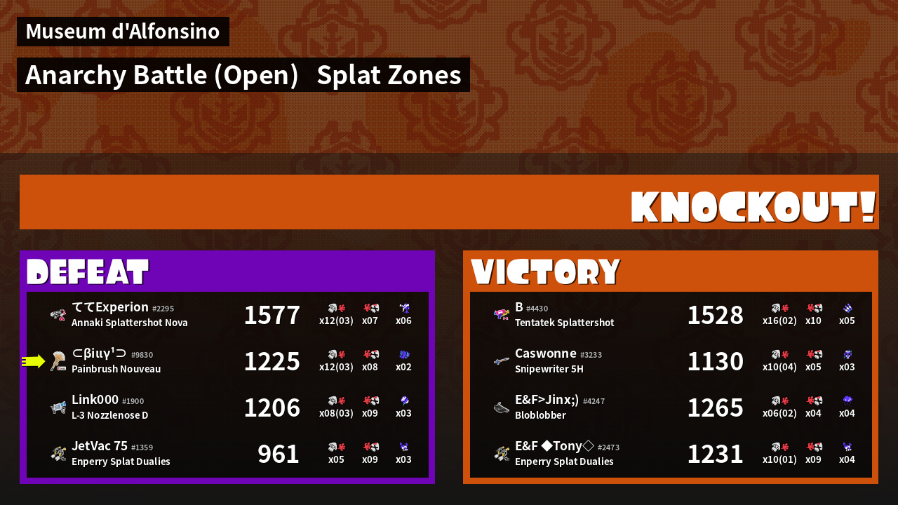 | Mode | Splat Zones - Anarchy Battle (Open) | ||