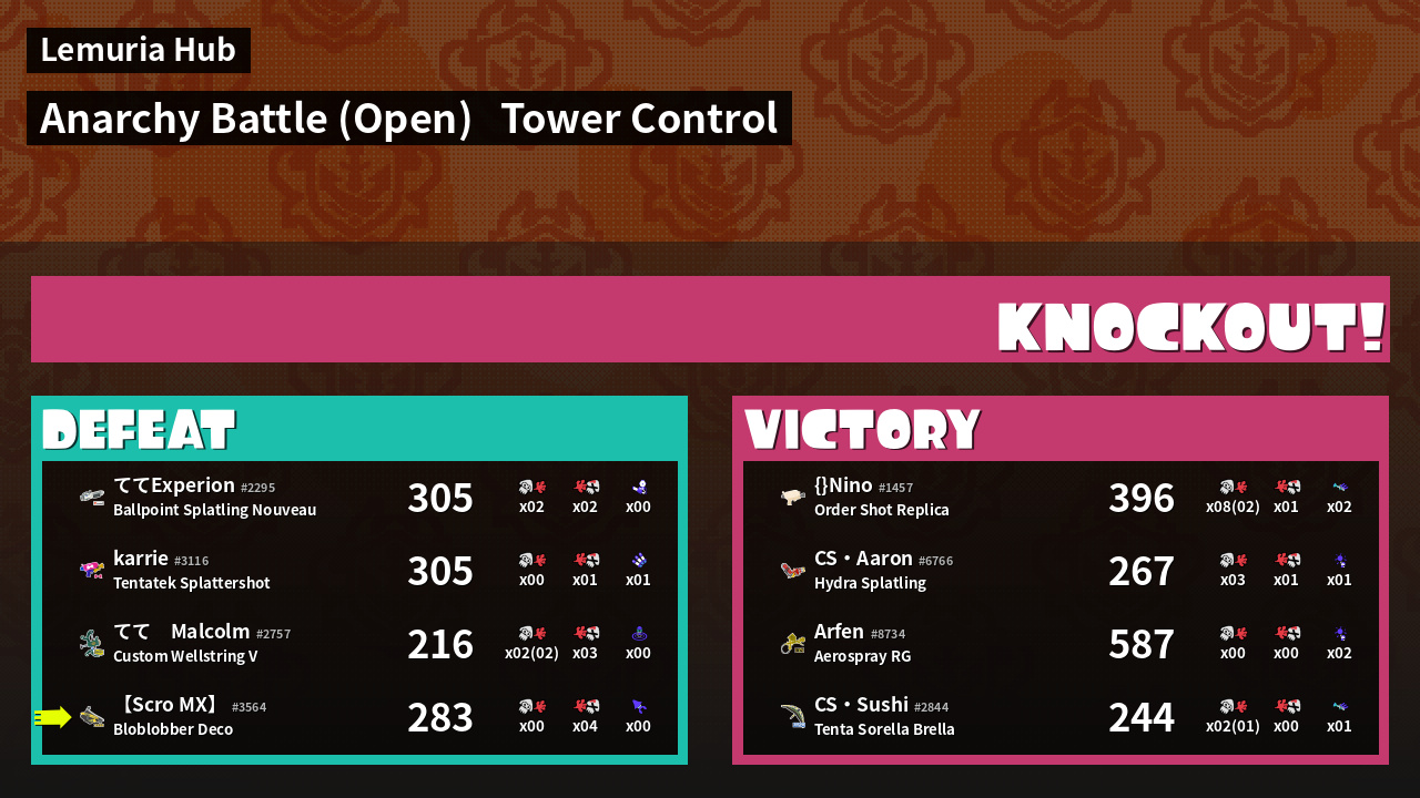 | Mode | Tower Control - Anarchy Battle (Open) | ||