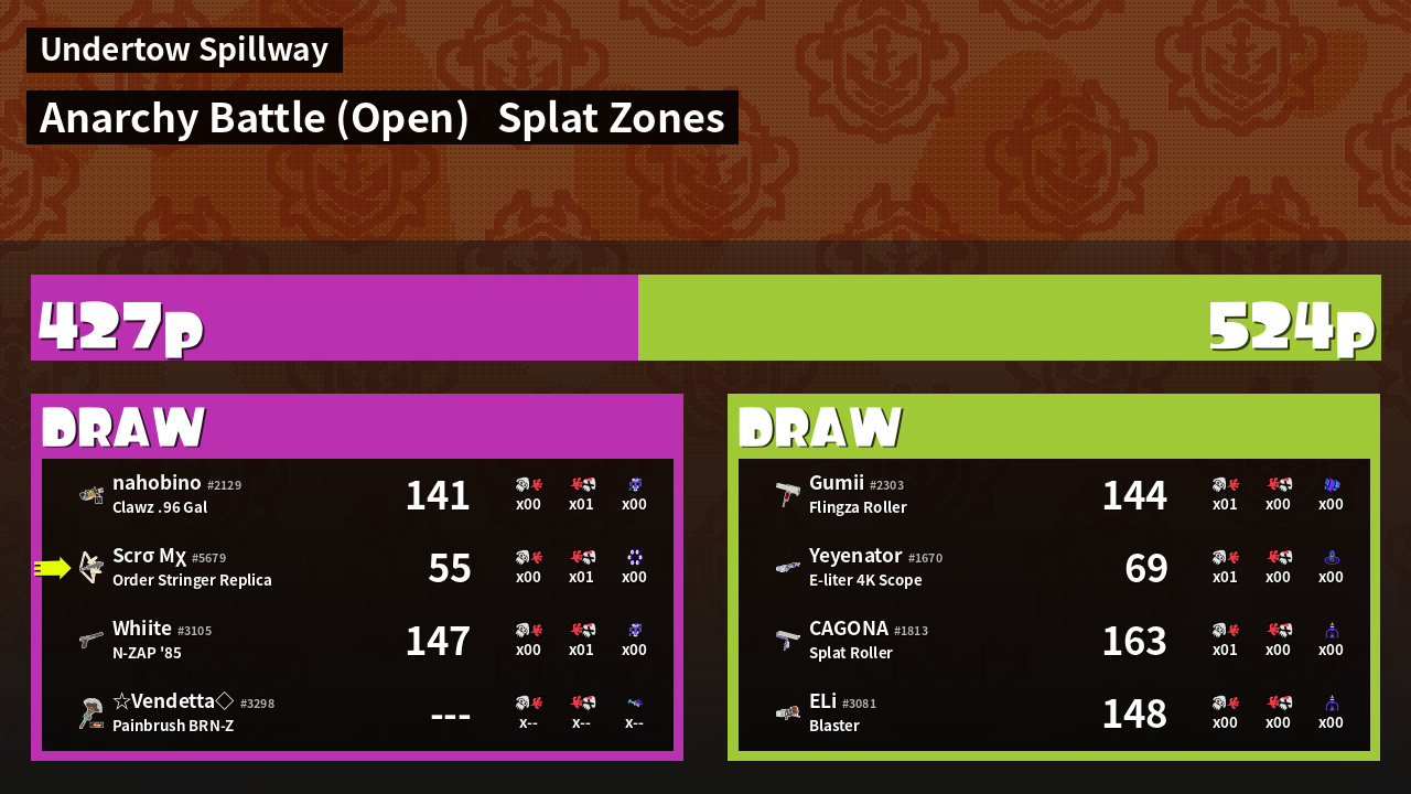 | Mode | Splat Zones - Anarchy Battle (Open) |